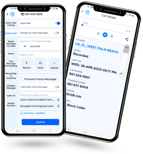 Easily track calls and texts from multiple sources. Record, transcribe, and analyze calls. Access detailed reports. Use mobile app to receive and send calls and texts. Or you can also login to The Call Portal.